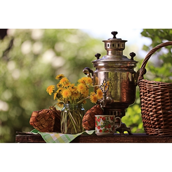 А уж если пить чай – то из самовара. И не из электрического, коим вынуждены мы все пользоваться в теперешних городских условиях. На лоне природы приемлемым может быть только чай из настоящего самовара, растопленного шишками! Часто говорят теперь, что семьи в России стали маленькими. Возражу на это – не маленькими, а разлученными. А если соберется вся дружная родня – бабушки с дедушками, тети и дяди, братья с сестрами, деверями и шуриными, детишки стайкой, не разбери кто там чей – так выходит, что совсем и не малы у нас семьи! А потому самовар необходимо приобрести ведра на полтора, уж там и вода не остынет, и хватит для всех!